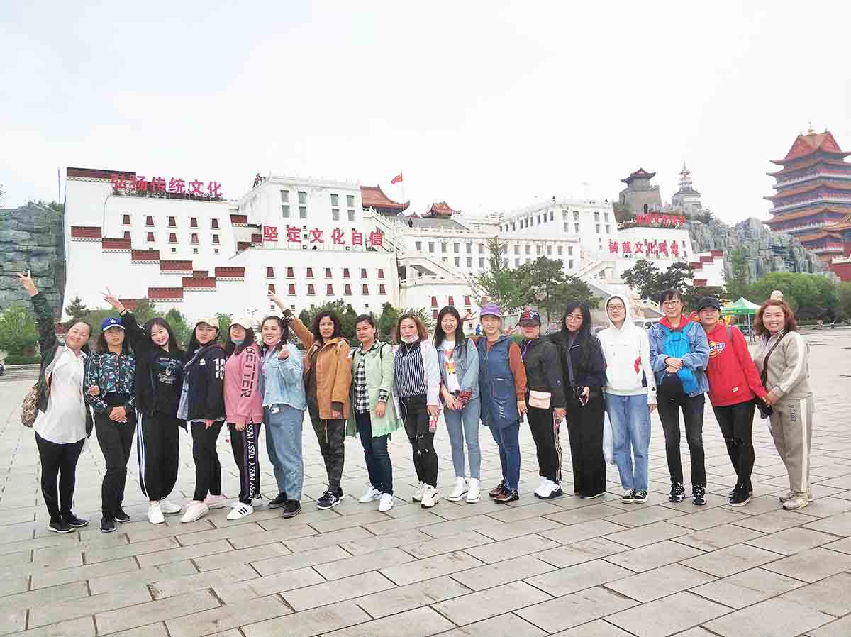 征服九華山頂峰之后,我們順勢而下,游覽了著名的慈海寺。學(xué)著周圍虔誠燒香拜佛的樣子,我們滿懷虔誠,感受著古代建筑的大氣與恢弘,也為自己許下美好的愿望。我們接著向小布達拉宮出發(fā)了。一路我們徒步前進,小白因為平時鍛煉的少,在下山的時候走的太急,腳抽筋了,經(jīng)驗豐富的李主管立刻上來按摩,還囑咐多甩一甩腿。多虧她的悉心照顧,小白的腳好多了,不影響繼續(xù)步行。小白打趣說“自從來到九華山,腰不疼了,腿不抽了,心也不跳了,感覺越來越年輕!”大家都笑了,氣氛十分活躍。大家心情舒暢,開心地笑著、玩著,互相交流著,活動氣氛熱烈,歡聲笑語聲在山林中飄蕩。沒多久我們就來到了小布達拉宮,領(lǐng)略西域文化的洗禮,感受別樣風(fēng)情。