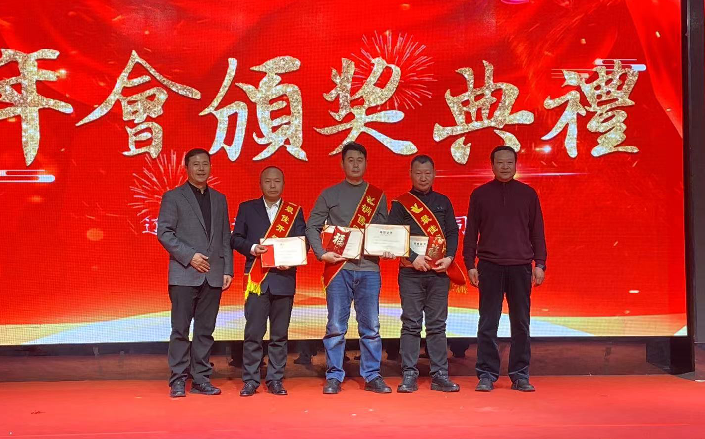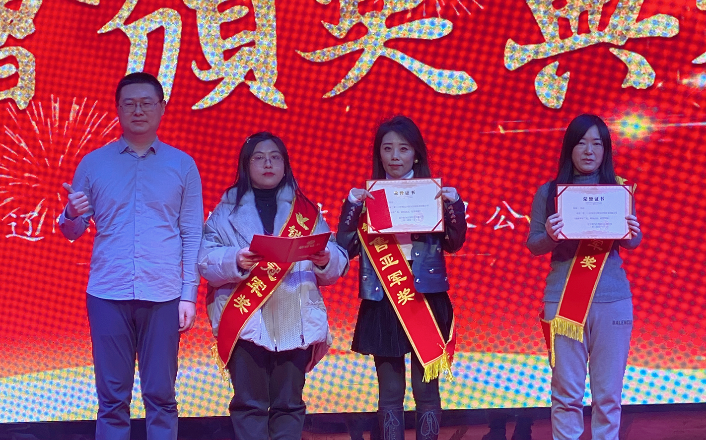 周瑜獲得集團事業(yè)部2023年度超目標獎、集團事業(yè)部年度銷售冠軍獎;李榮久獲得集團事業(yè)部2023年度超目標獎;邵丹獲得集團事業(yè)部2023年度超目標獎。嘉賓李占忠先生、總經(jīng)理王鐵良先生為獲獎者頒獎。